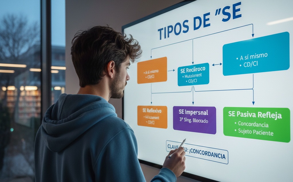 Si estás en 2º de Bachillerato, sabes que entender la función del «SE» es fundamental en los exámenes. Pero, ¿cómo lo preguntan? Normalmente, te darán una oración y te pedirán: