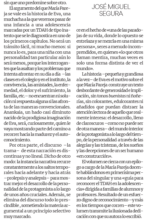 Reseña de José Miguel Segura Roselló, profesor de literatura y lengua española retirado, y crítico literario.